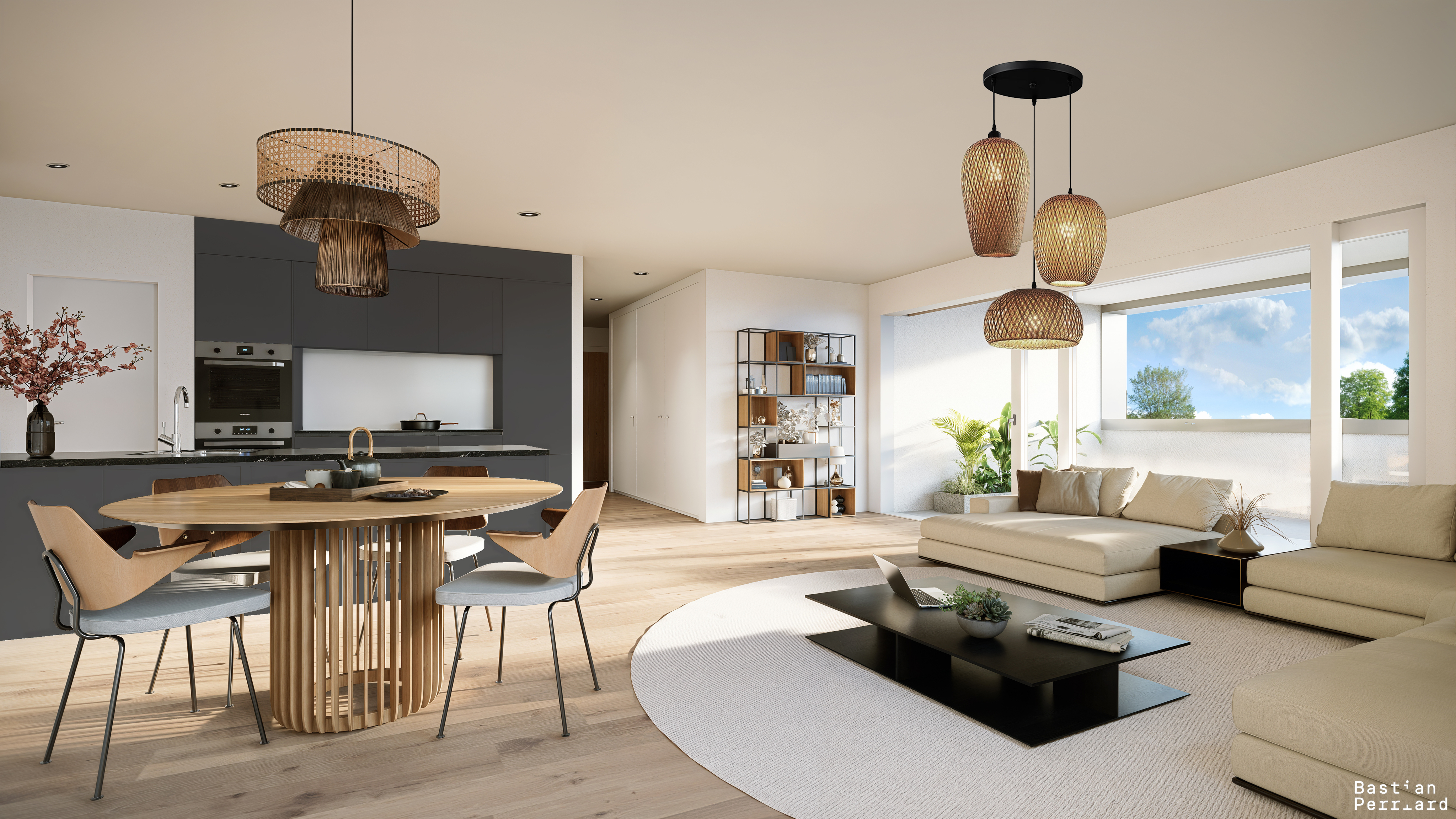 Le système de chauffage par pompe à chaleur géothermique de dernière génération intégrant un système de refroidissement free cooling avec régulation dans chaque pièce vous offrira un confort inégalable en hiver comme en été lors d'épisodes de canicules. L'ensemble des habitants de l'immeuble profitera de la production d'électricité de l'installation photovoltaïque.